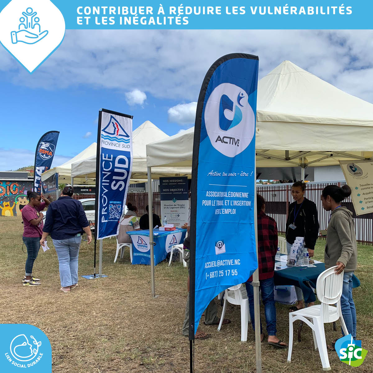 Plus de 100 personnes sont venues d’informer sur les stands de nos divers partenaires (Active, RSMA-NC c’est CHOC , POINT A – NC , CTS Formation, Groupement pour l’Insertion & l’Evolution Professionnelles – GIEP NC, Direction de l’Emploi et du logement de la province Sud).