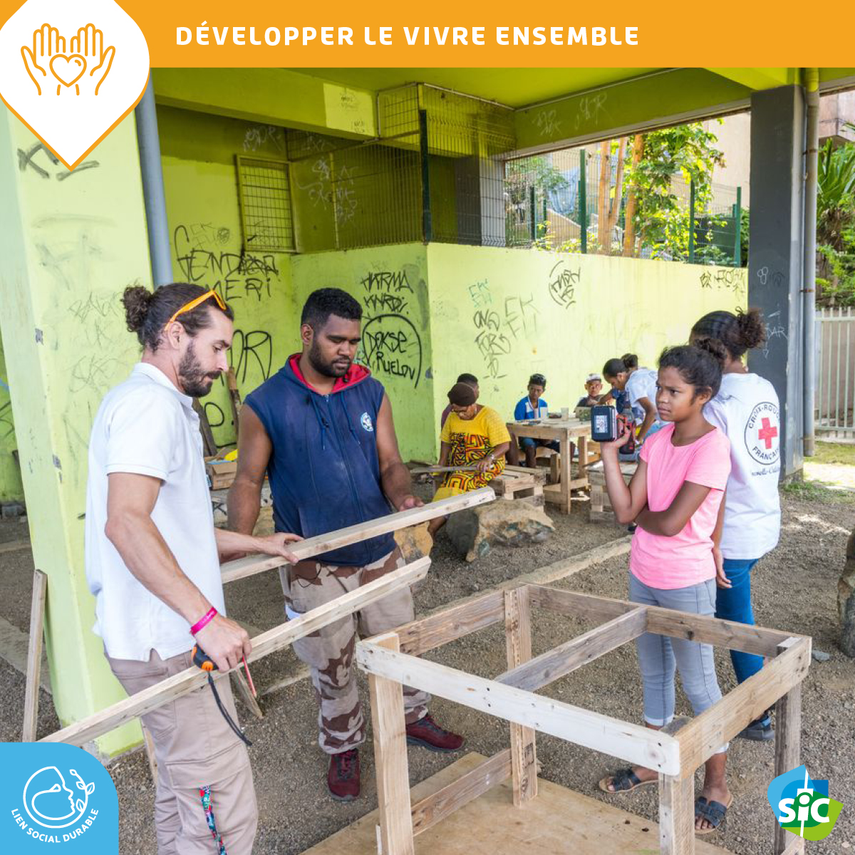 Copiloté la Croix-Rouge et la SIC, ce projet contribue à l’amélioration du cadre de vie et au « vivre ensemble » au sein de la résidence dans le cadre de la stratégie « lien social durable » de la SIC.